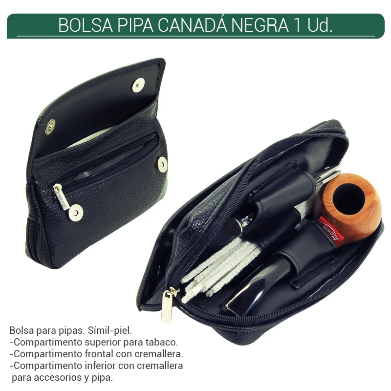 Bolsa para pipa negra con múltiples compartimentos.