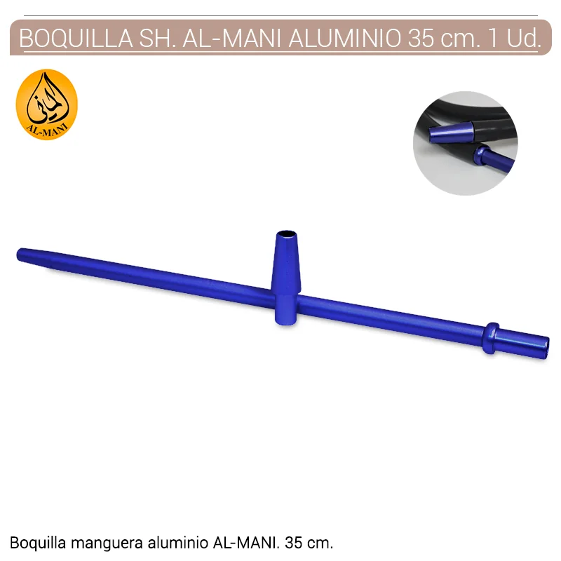 Producto de alta calidad, fabricado con materiales resistentes y duraderos. Está diseñada con forma recta de aluminio en color azul, lo que la hace atractiva y fácil de identificar. Tiene un longitud de 35 cm y adaptador, lo que permite una fácil inserción en la manguera de la shisha. La boquilla está hecha de aluminio, lo que la hace resistente a la corrosión y al desgaste. Además, su diseño en espiral permite una distribución uniforme del humo, lo que mejora la experiencia de fumar. COD. ART. SISACC3102
