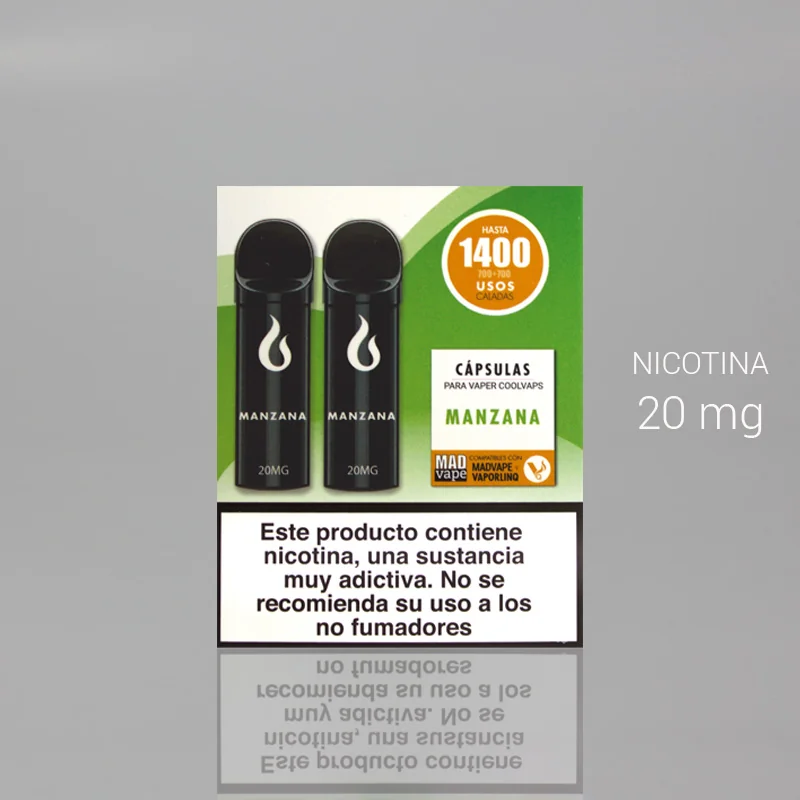 Para los consumidores más fieles, las recargas Q-POD de COOL VAPS son la solución perfecta. Las cápsulas desechables con sabor Manzana de 20 mg de nicotina están diseñadas para proporcionar la misma calidad y sabor excepcionales que nuestros productos desechables. Así, podrás disfrutar de tu aroma favorito una y otra vez con la comodidad y eficiencia de un dispositivo recargable. Cada cajita contiene 2 recargas. ¡Sumérgete en la calidad y sabor inigualables de COOL VAPS y lleva tu experiencia de vapeo al siguiente nivel! COD. ART. CIGCOO5105