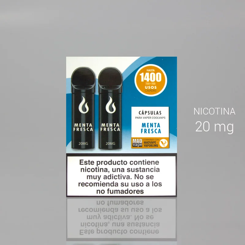 Para los consumidores más fieles, las recargas Q-POD de COOL VAPS son la solución perfecta. Las cápsulas desechables con sabor Menta Fresca de 20 mg de nicotina están diseñadas para proporcionar la misma calidad y sabor excepcionales que nuestros productos desechables. Así, podrás disfrutar de tu aroma favorito una y otra vez con la comodidad y eficiencia de un dispositivo recargable. Cada cajita contiene 2 recargas. ¡Sumérgete en la calidad y sabor inigualables de COOL VAPS y lleva tu experiencia de vapeo al siguiente nivel! COD. ART. CIGCOO5101