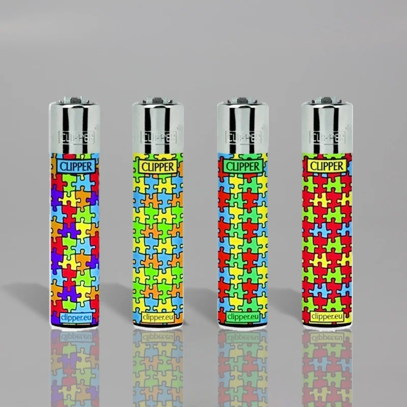 Clipper lighters with puzzle designs.