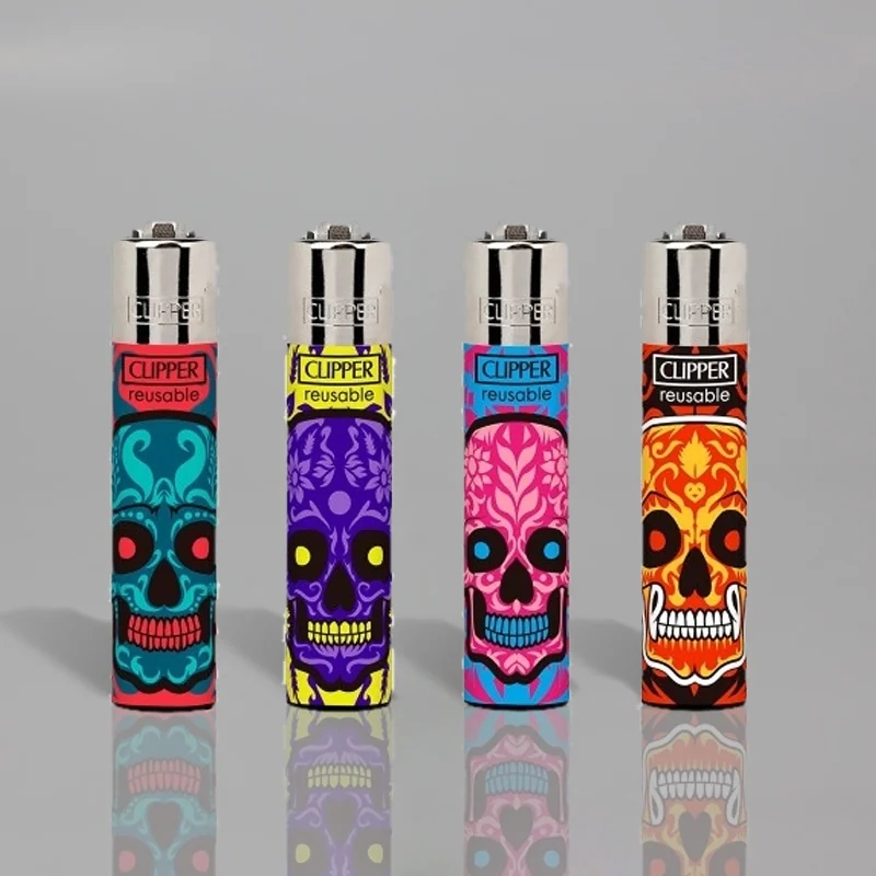 Clipper reusable lighters with skull designs.