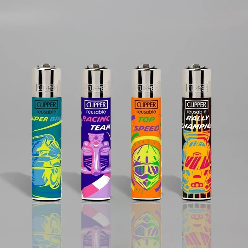 Clipper lighters with racing designs.