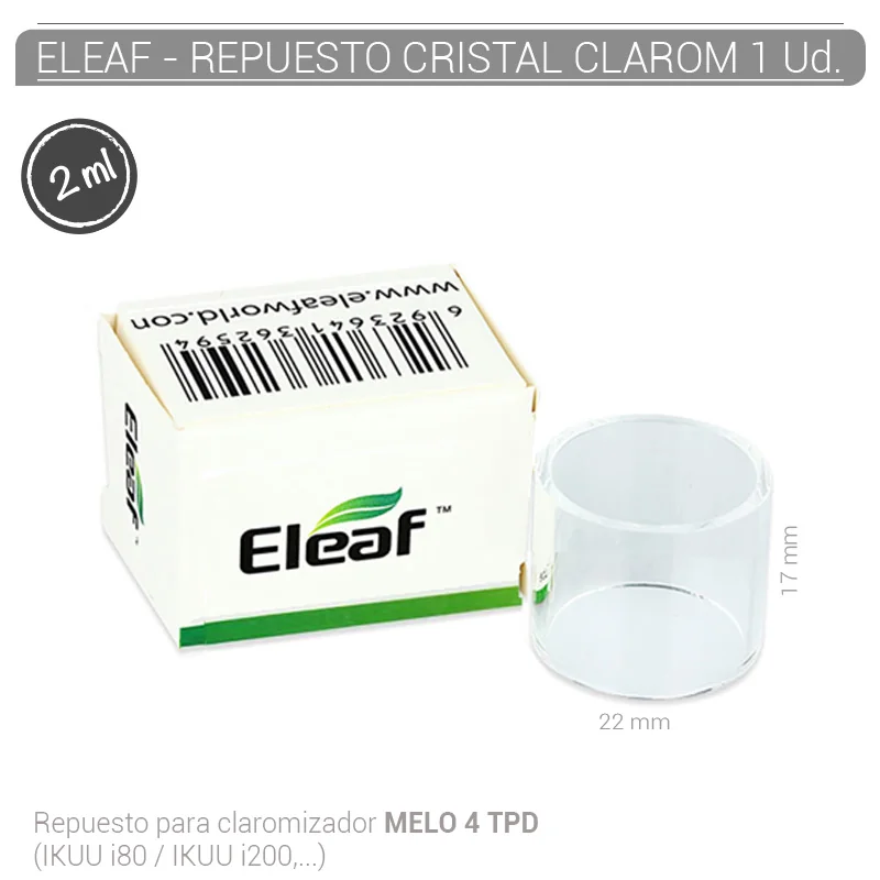 El tubo de vidrio PYREX Eleaf Melo 4 (2ml) es un repuesto esencial para el tanque Melo 4, asegurando una capacidad de almacenamiento de 2ml para tu líquido de vapeo favorito. Fabricado con vidrio de alta calidad, garantiza resistencia y pureza en el sabor. Con este repuesto, disfrutarás de una experiencia de vapeo sin preocupaciones. COD. ART. CIGOTR4950