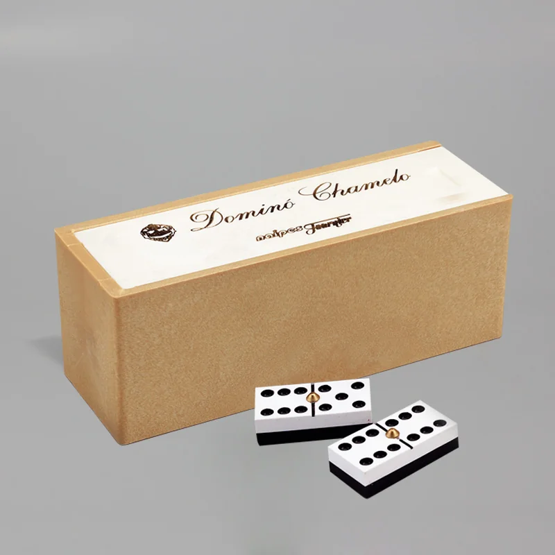 Juego de dominó en caja de madera.