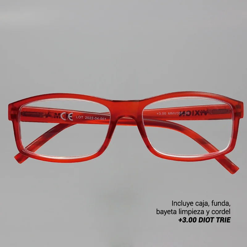 Gafas de lectura +3.00 dioptrías con accesorios.