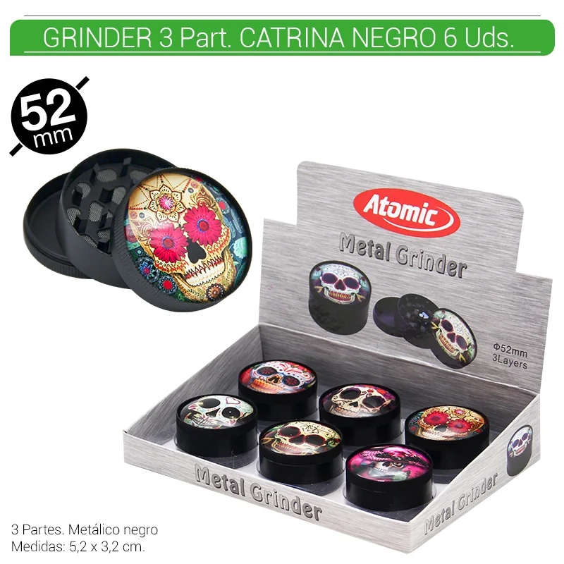 Grinder 3 Partes Catrina Negro 6 Uds.