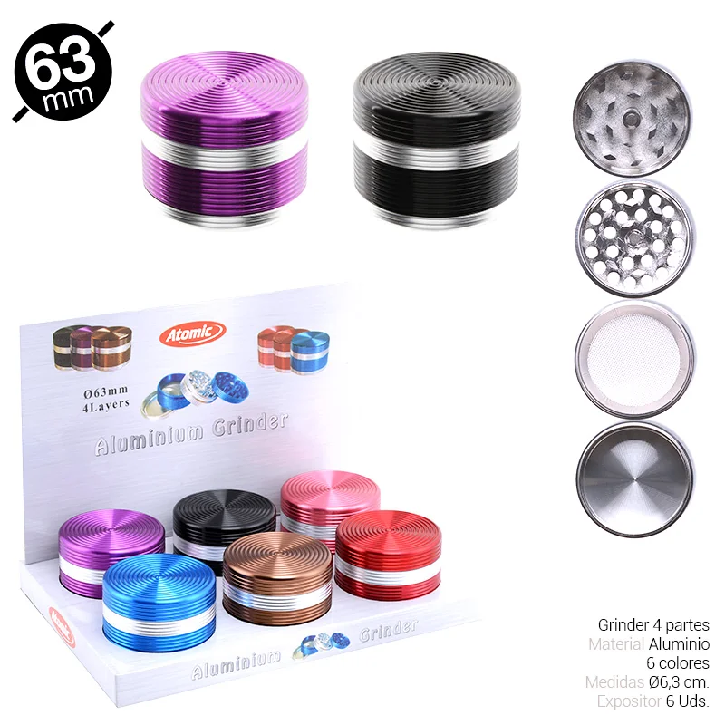 GRINDER 4 Part. ATOMIC ONDAS COL. METAL. 63 mm. 6 Uds. 02.12450