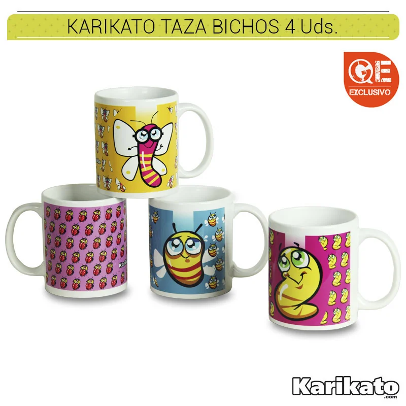 Divertidas tazas con dibujos del popular ilustrador Karikato. 4 diseños distintos. COD. ART. KAROTR9101