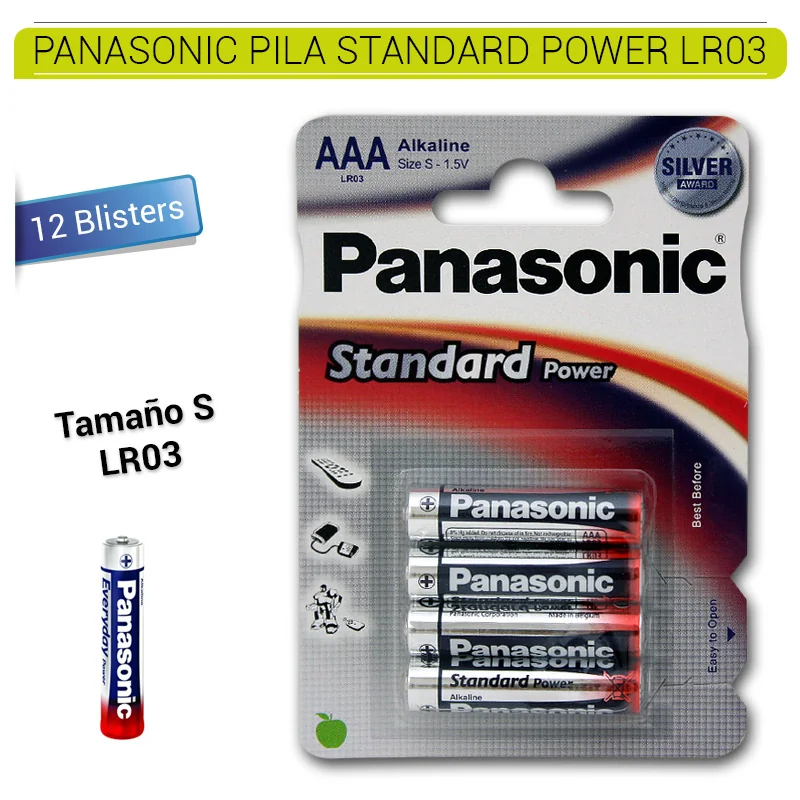 Pila LR03 AAA Everyday Power de Panasonic, en un pack de 12 blísters. Cada blíster contiene 4 pilas alcalinas AAA de alta calidad. Diseñadas para ofrecer un rendimiento duradero y confiable en una amplia gama de dispositivos electrónicos, como controles remotos, juguetes, relojes y más. Ideales para uso diario en el hogar u oficina. Garantizan una alimentación constante y eficiente. COD. ART. PANPIL1000