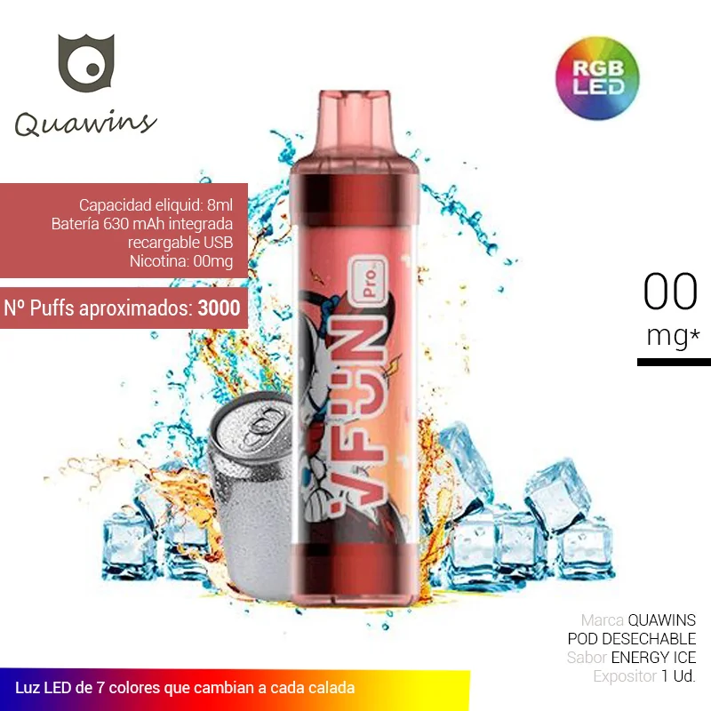 QUAWINS VFUN PRO ENERGY ICE DIS. 3000 PUFF 00mg 1 Ud.