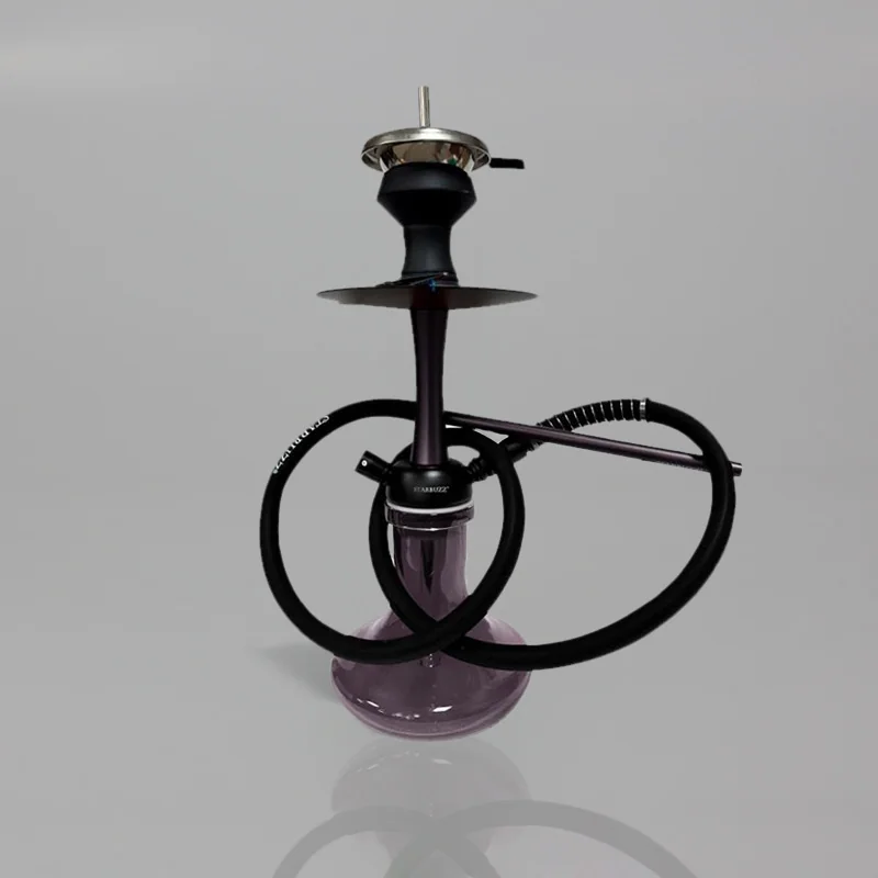 Shisha de cristal con manguera negra.