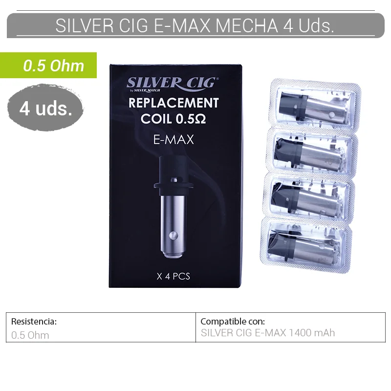 SILVER CIG MECHA E-MAX 0.5 Ohm DL10 4 Uds. 40678780
