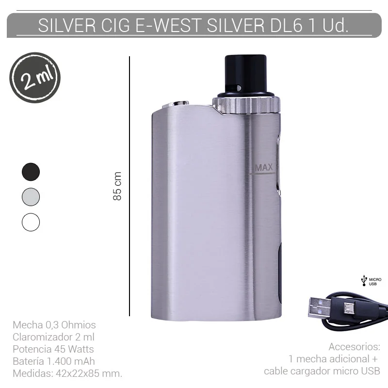 SILVER CIG E-WEST SILVER 1400 mAh/0.30 Ohm DL6 1 Ud. 40678764