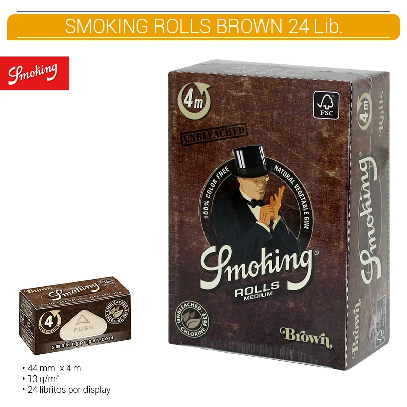 Papel de fumar Smoking Rolls Brown, 24 libritos.