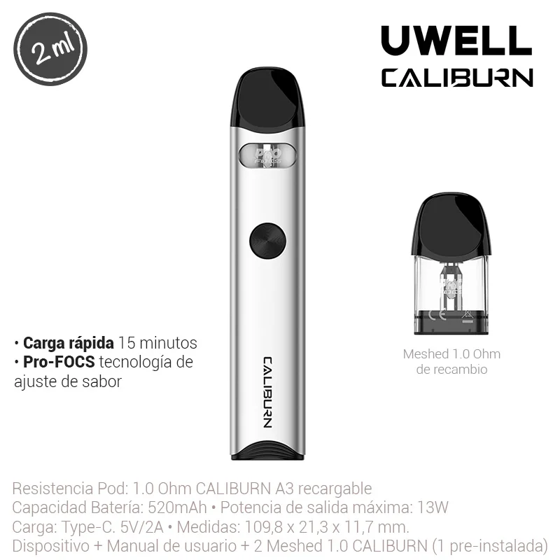 UWELL CALIBURN A3 POD KIT SILVER 1 Ud.