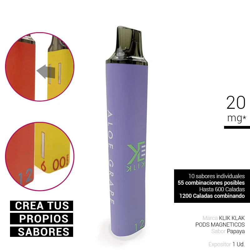 Vapeador KLIK KLAK Aloe Grape, 600 caladas.