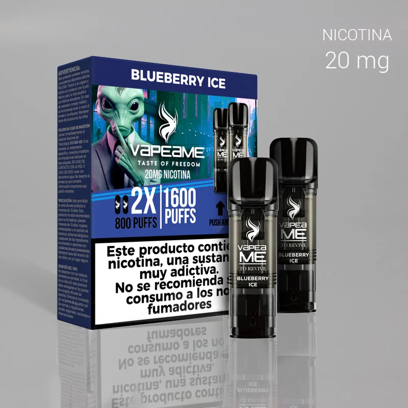 Descubre el poder refrescante del VAPEAME Set 2 Recargas 800 + 800 Caladas Blueberry Ice 20 mg. Este dúo irresistible combina la dulzura natural del arándano con una explosión helada que estimula cada inhalación. Cada unidad ofrece 800 caladas llenas de sabor intenso y vapor suave, diseñadas para quienes buscan calidad, duración y una experiencia potente en formato práctico. Su concentración de nicotina de 20 mg proporciona una satisfacción inmediata y constante, ideal para sustituir el cigarrillo tradicional o disfrutar de un momento de placer puro. Ligero, elegante y fácil de usar, el VAPEAME Blueberry Ice es tu compañero perfecto para vapear con estilo y frescura en cualquier lugar. ¡Siente el hielo, saborea el arándano, vive la experiencia Vapeame! COD.ART VAPPOD1000