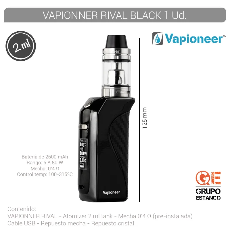 VAPIONEER RIVAL BLACK 1 Ud. [CV024]