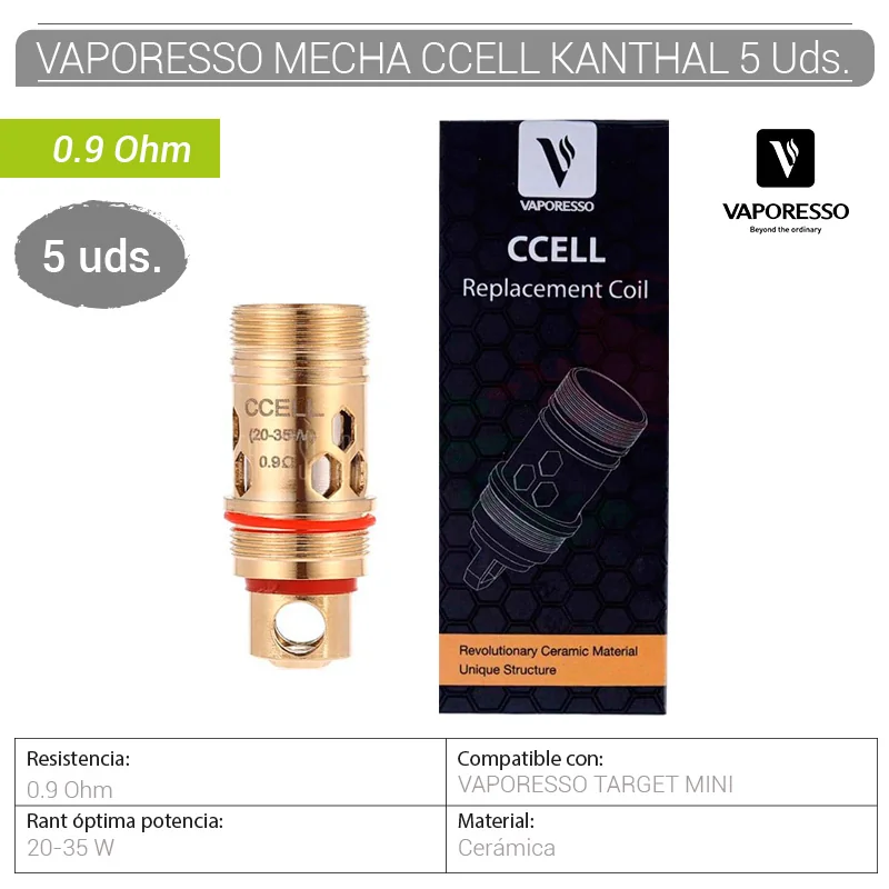 VAPORESSO MECHA CCELL KANTHAL 0.9 Ohm 5 Uds.[230048]