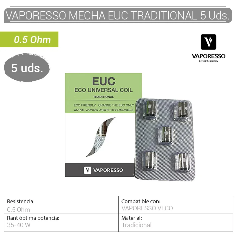 Mecha EUC Traditional 0.5 Ohm, 5 unidades.