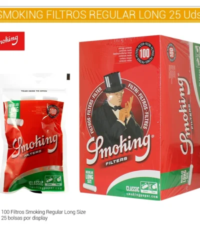 ¿Buscas filtros más largos que los convencionales? Los filtros Regular Long de Smoking® tienen el mismo diámetro que los cigarrillos estándar (8 mm), pero son algo más largos (22 mm). Los filtros de este formato tienen un mayor filtrado y, además, te ofrecen un ahorro de tabaco por cada cigarrillo que te lias. En cada bolsa cuentas con 100 filtros Regular Long, listos para usar en tus cigarrillos. Cada caja contiene 25 unidades. Usar boquillas para tabaco de liar mejora muchísimo la experiencia del fumador. Facilitan el manipulado del papel de liar tabaco, homogenizan la quema del cigarro, nos evitan ciertas sustancias perjudiciales y además proporcionan un agarre mucho más firme para nuestros labios. Por no hablar de que, gracias a la superficie que ocupan, nos permiten fumarnos hasta la última calada sin quemarnos. COD. ART. SMKCOM3215