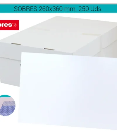 Sobres KORES, dimensiones 260 x 360 mm, en un paquete de 250 unidades. Fabricados con papel duradero para una protección confiable de documentos y correspondencia. Diseñados para alojar documentos de tamaño más grande de forma segura. Adecuados para envíos postales y comunicaciones comerciales. COD. ART. PAPSOB1040