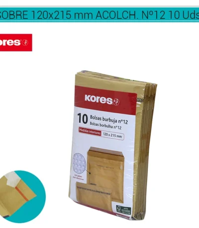 Sobres KORES Acolchados Kraft Nº12, con dimensiones de 120 x 215 mm, en un paquete de 10 unidades. Estos sobres están fabricados con material kraft acolchado para brindar una protección adicional a tus envíos postales. Ideales para el envío de documentos importantes, fotografías, o artículos frágiles que requieren cuidado extra durante el transporte. Son una opción confiable y segura para tus necesidades de embalaje y envío. COD. ART. PAPSOB2012