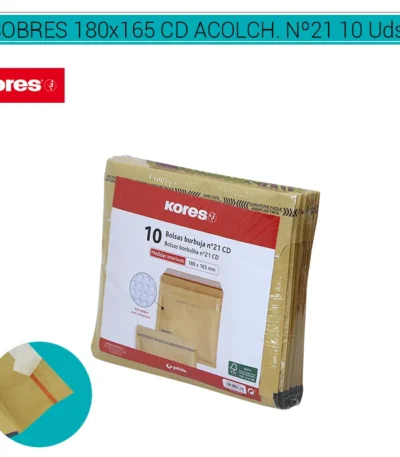 Sobres KORES Acolchados Kraft Nº21 CD, tamaño 180 x 165 mm, en un paquete de 10 unidades. Fabricados con material kraft acolchado para proteger CDs y DVDs durante el envío. Ideales para envíos postales de medios digitales. Adecuados para uso comercial y personal. COD. ART. PAPSOB2100