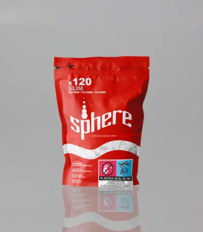 SPHERE FILTROS SLIM El Filtro Sphere Slim 120 Uds. es un producto diseñado para fumadores que buscan una experiencia más limpia y suave. Estos filtros están fabricados con acetato de celulosa blanqueada y papel poroso, materiales que garantizan una filtración eficiente de impurezas, proporcionando caladas más frescas y cómodas. Su diseño es elegante y compacto, ideal para utilizar con papeles de liar. Cada paquete contiene 120 filtros de tamaño 6 x 1,5 cm. COD. ART. SPHCOM1000
