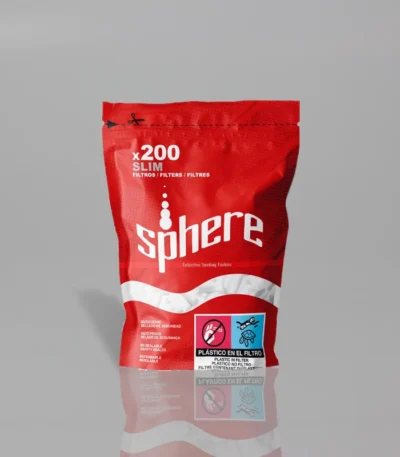 SPHERE FILTROS SLIM El Filtro Sphere Slim 200 Uds. es un producto diseñado para fumadores que buscan una experiencia más limpia y suave. Estos filtros están fabricados con acetato de celulosa blanqueada y papel poroso, materiales que garantizan una filtración eficiente de impurezas, proporcionando caladas más frescas y cómodas. Su diseño es elegante y compacto, ideal para utilizar con papeles de liar. Cada paquete contiene 200 filtros de tamaño 6 x 1,5 cm. COD. ART. SPHCOM1002