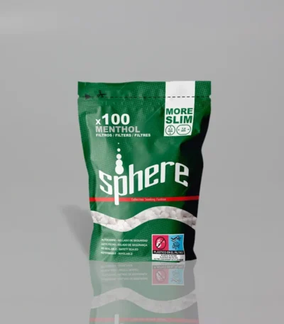 SPHERE FILTROS MORE SLIM MENTHOL Los Filtros SPHERE More Slim Menthol 100 son filtros ultrafinos con sabor a mentol, diseñados para ofrecer una experiencia de fumar más fresca y suave. Están fabricados con acetato de celulosa blanqueada y papel poroso, garantizando una filtración eficaz y un tamaño compacto que hace tu cigarrillo más delgado y estilizado. Cada paquete contiene 40 unidades, con filtros de tamaño reducido para quienes prefieren un formato slim con un toque mentolado que refresca cada calada. Son ideales para usar en boquillas vacías o para quienes buscan un filtro de alta calidad con sabor mentolado. COD. ART. SPHCOM1010